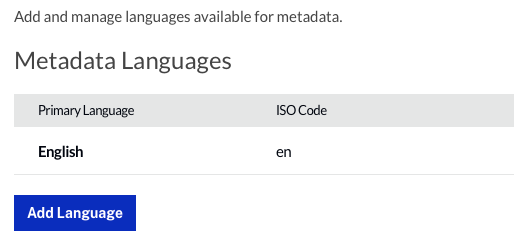 After a Primary Language is saved, additional metadata languages can be added. By adding additional languages, you will be able to enter additional, multi-lingual metadata in the Media module. To add additional languages, follow these steps.