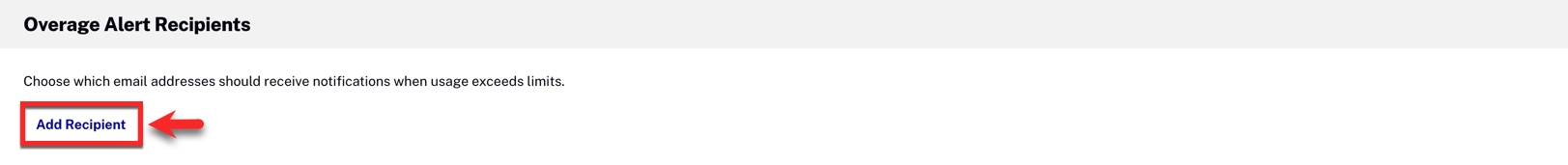 When a threshold is reached, designated recipients will receive an Overage Notification email. The email includes the following details: