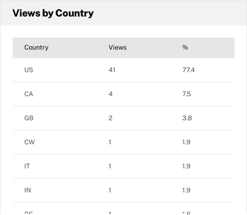 La section Vues par pays affichera un graphique avec le nombre de vues par pays.