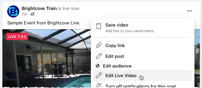 元に戻るにはライブ ダッシュボード、Facebook のニュース フィードで投稿を見つけ、投稿の横にある省略記号 (...) をクリックして、ライブビデオの編集.