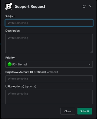 One support option is Slack, which can be used to open a case with Brightcove Support.